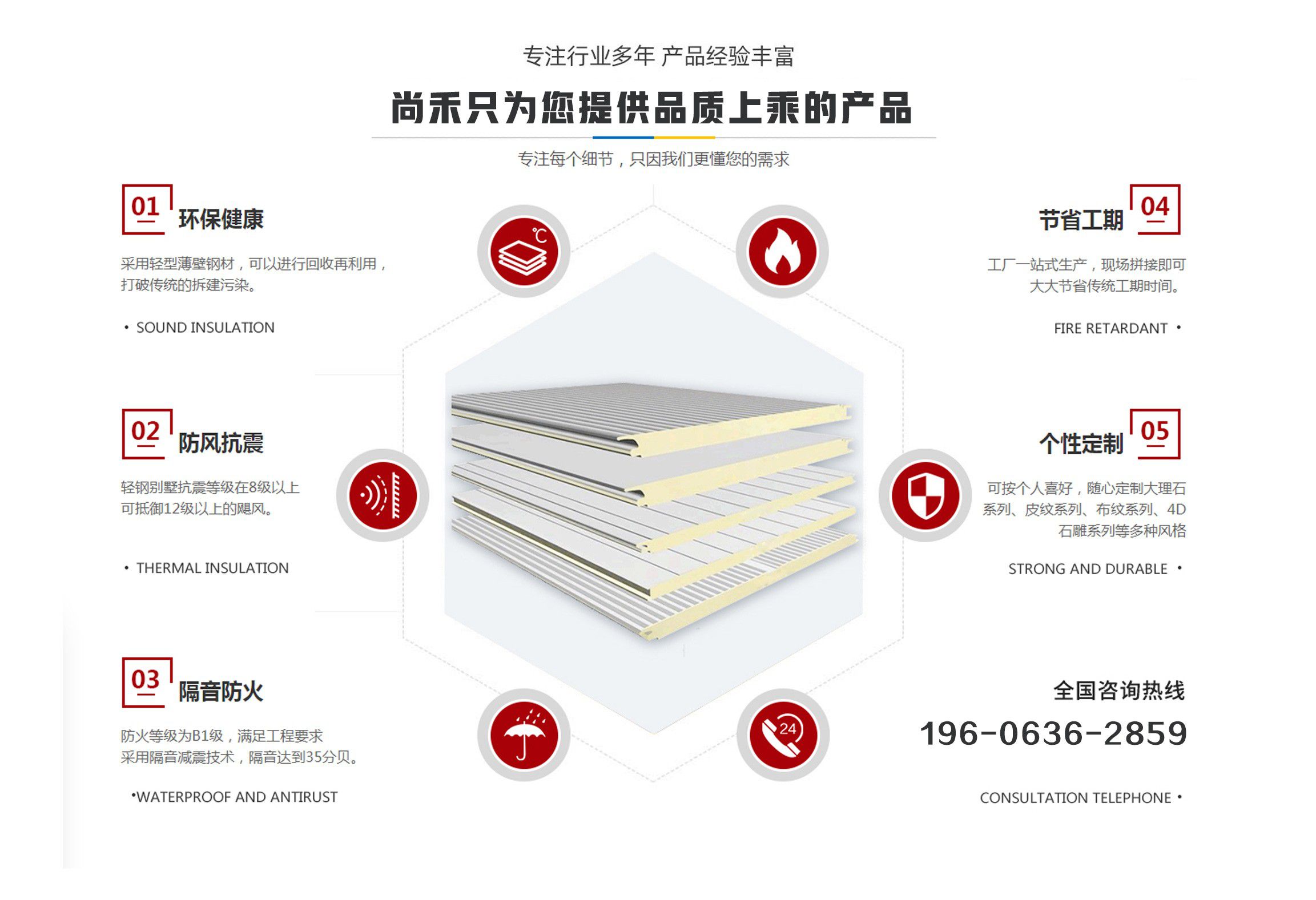 山東尚禾經(jīng)貿(mào)有限公司是集板材設(shè)計(jì)、研發(fā)、生產(chǎn)、施工、一體化的科技公司,并在同行業(yè)中率先通過(guò)了質(zhì)量、環(huán)境、安全管理體系認(rèn)證。公司2011年投入資金2000余萬(wàn)元引進(jìn)世界先進(jìn)的聚氨酯節(jié)能板連續(xù)生產(chǎn)線(xiàn)、意大利進(jìn)口發(fā)泡系統(tǒng),采用六組份在線(xiàn)自動(dòng)操作混合澆注技術(shù),在線(xiàn)一次性完成社會(huì)配料中心或工廠的配比混合工藝,并可以根據(jù)溫度在線(xiàn)自動(dòng)調(diào)整,從而生產(chǎn)處與眾不同的高強(qiáng)度、節(jié)能型、綠色環(huán)保的聚氨酯夾芯板。(其使用年限高于同行業(yè)其他品牌5-10年)  公司主要經(jīng)營(yíng)范圍包括聚氨酯夾芯板,PU夾芯板,冷庫(kù)板,潔凈板,聚氨酯冷庫(kù)板,冷庫(kù)保溫板的設(shè)計(jì)、生產(chǎn)、銷(xiāo)售、技術(shù)指導(dǎo)、安裝及一體、以及進(jìn)出口業(yè)務(wù),是中部六省最大的綠色節(jié)能建材生產(chǎn)基地。聚氨酯夾芯板年產(chǎn)200萬(wàn)平方米、PU夾芯板、冷庫(kù)保溫板500萬(wàn)平方米、鏈整產(chǎn)業(yè)綜合實(shí)力,開(kāi)創(chuàng)了六省至中西部創(chuàng)新型中小名企總部基地,并將著力推進(jìn)中國(guó)中西部地區(qū)集成房屋住宅產(chǎn)業(yè)化發(fā)展進(jìn)程。  科技創(chuàng)新、節(jié)能典范。千萬(wàn)間始終秉承“誠(chéng)信、合作”的企業(yè)文化精髓,長(zhǎng)期致力于鋼板材結(jié)構(gòu)節(jié)能建筑產(chǎn)業(yè),愿與社會(huì)各界攜手合作,共鑄綠色、環(huán)保美好未來(lái)。 產(chǎn)品具有良好的絕熱、阻燃、隔音、環(huán)保、耐久性能,可廣泛應(yīng)用于工業(yè)、商用建筑內(nèi)外墻、以及民用建筑外墻保溫、空調(diào)通風(fēng)系統(tǒng)、專(zhuān)用防火保溫門(mén)等領(lǐng)域。  我們始終秉承...